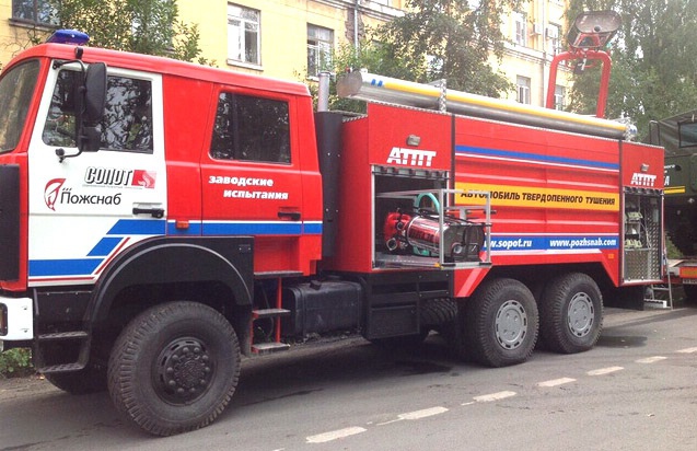 Установлена эта новинка на автомобиле АЦ 10,0 (МАЗ 6317) производства ООО «ПОЖСНАБ». Так, появилось новое название в пожарной технике — АТПТ — автомобиль твердопенного тушения.